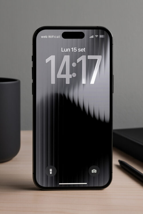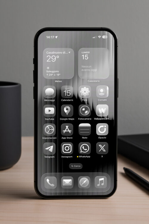 A beautiful dark and elegant wallpaper, particularly well-suited for the new iOS 26 both because it evokes a “glass” effect and because its colors improve text readability, especially for notifications on the Lock Screen. It’s also a wallpaper that works perfectly for anyone wanting to try out the new transparent glass-style Home Screen icons (a novelty of iOS 26).